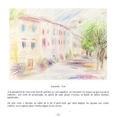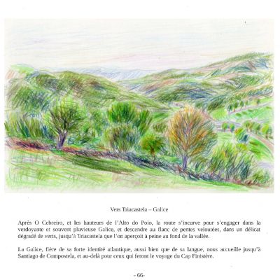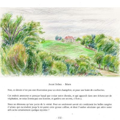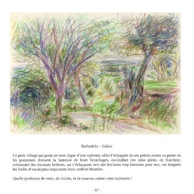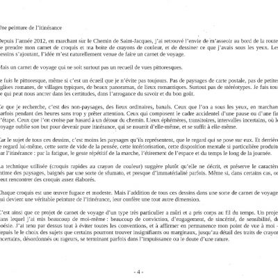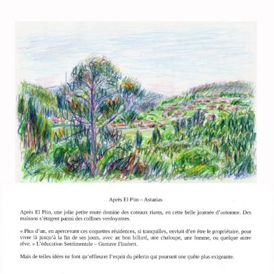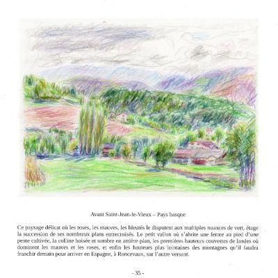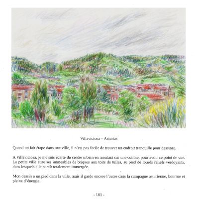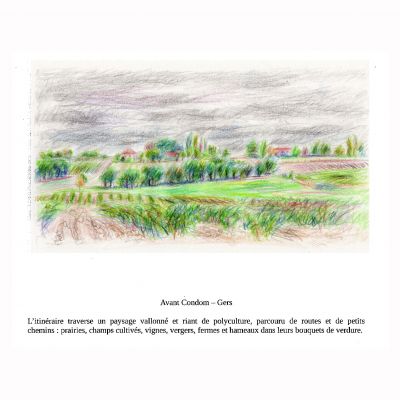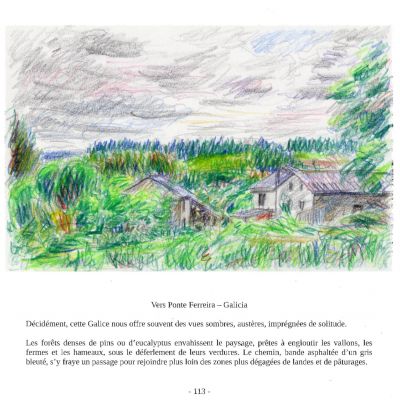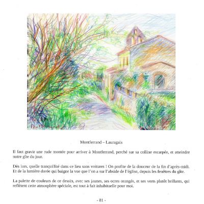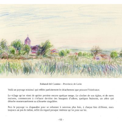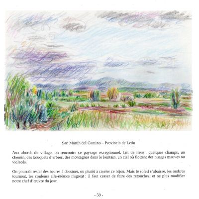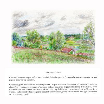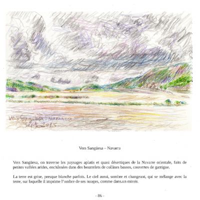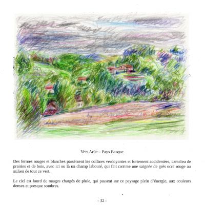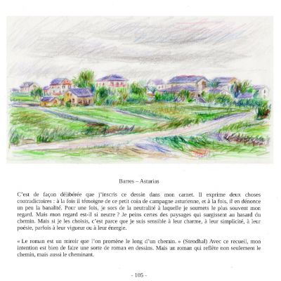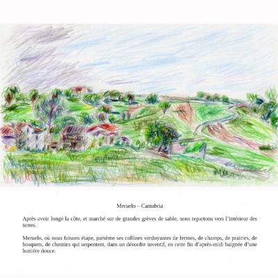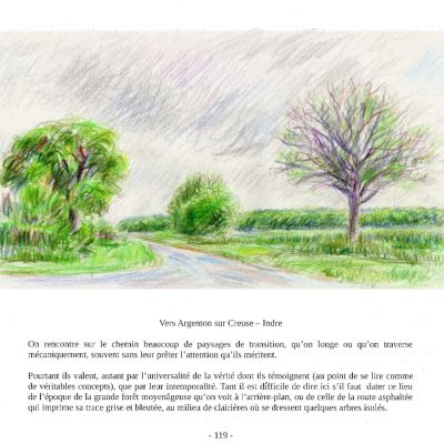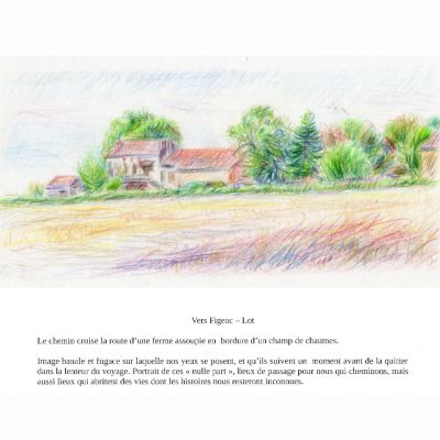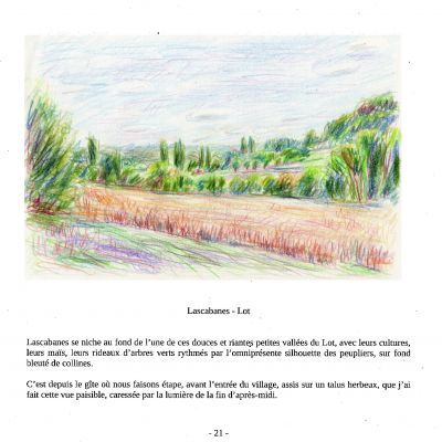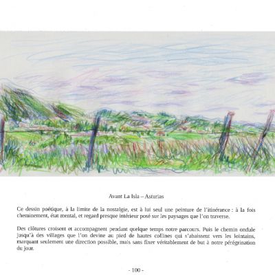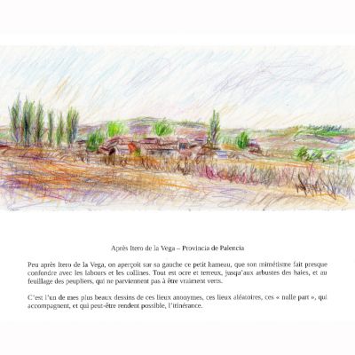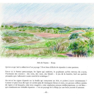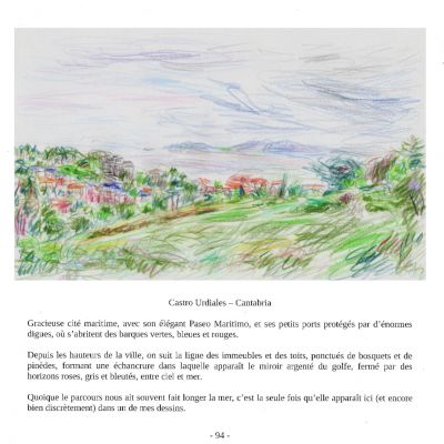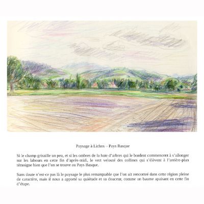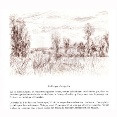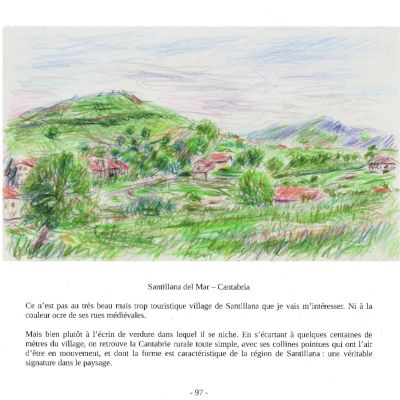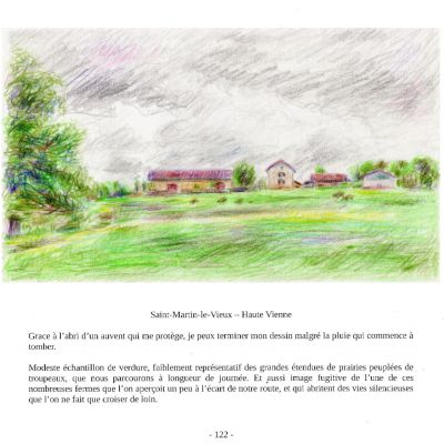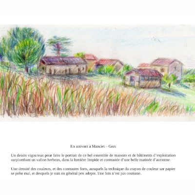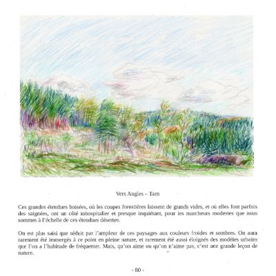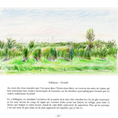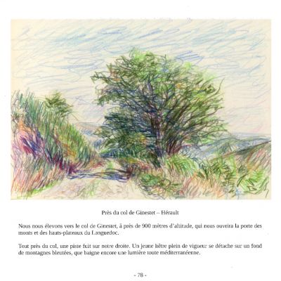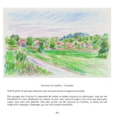 Chaque dessin est accompagné d’une petite légende indiquant le lieu qui est représenté, assorti d’un bref commentaire de 5 à 10 lignes, qui exprime mon ressenti personnel sur le paysage peint, ce qu’il évoque pour moi, avec parfois quelques indications sur les conditions dans lesquelles je l’ai fait, et parfois aussi quelques observations sur les couleurs, ou les lumières, ou autres considérations plus esthétiques.