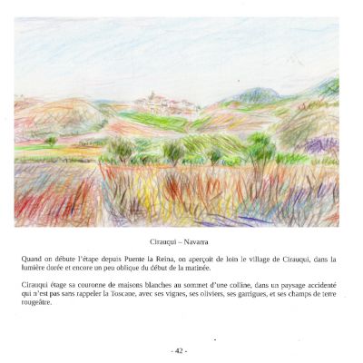 Les dessins sont rangés par grands itinéraires : Voie du Puy, Camino Francés, Chemin d’Arles, Camino del Norte, Camino primitivo, et Voie de Vézelay ; et par ordre géographique à l’intérieur de chaque itinéraire.
