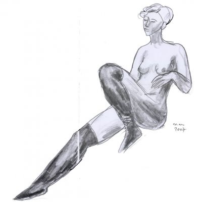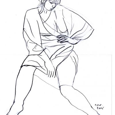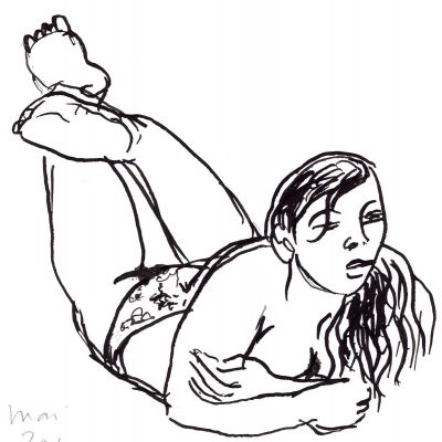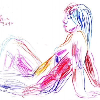 Je ne cherche pas à faire des académies. Ce qui m'intéresse, c'est le croquis qui capte le mouvement et l'expression, avec l'aide souvent providentielle des ratures, des irrégularités et des accidents du trait. Un trait qui doit rester vivant et accrocher la lumière. Maladroit s'il le faut. Et des poses intimistes, qui ne soient surtout pas fluides et jolies, synonymes d'insipides. A la mine de plomb, au crayon de couleur, à la plume.