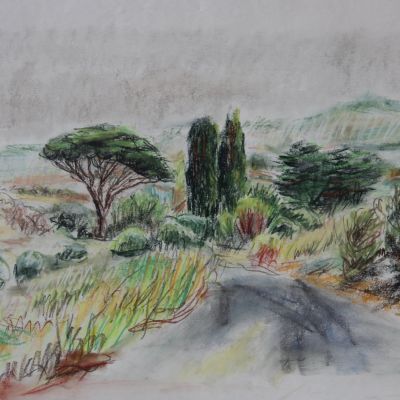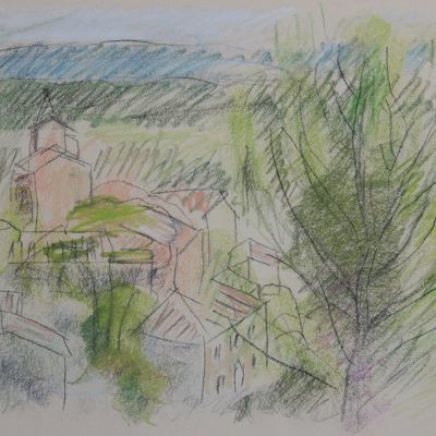 Mais je n'ai réalisé qu'un très petit nombre de paysages : une série de paysages du Roussillon à la craie en 1988 - 1989, et sporadiquement un dessin par ci par là à la craie ou au crayon.